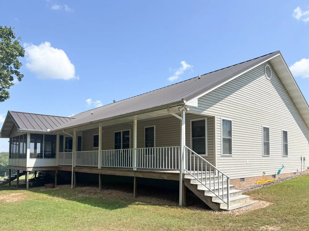 Located just a little south of Gainesville, MO, just off the highway and a short travel down a gravel road, this 169 acre working farm is set up right and ready to go. With approximately 70 acres in pasture and the remaining acreage in timber, you have the ability to run some livestock AND also have a place to hunt the wild turkey, whitetail deer, or any of the other critters that call Ozark County home and you might enjoy having over for dinner...but only in the specified seasons set forth by the Missouri Department of Conservation of course. Details on the home: This elegant 3 bed, 2 bath, 1 story Ranch home was built in 2000 and has 2392 sq. ft of living space. When you add in the oversized, 2 car, 1 boat attached garage and all the covered porches and decks, the 3 year old, standing seam, metal roof covers quite a large area.
