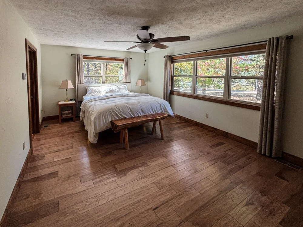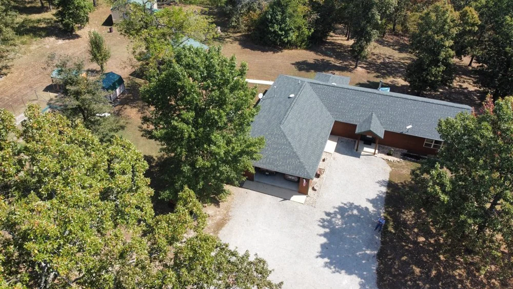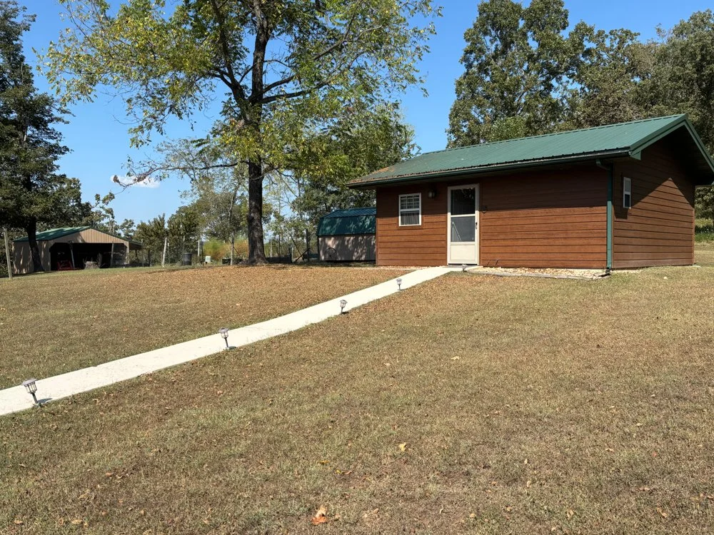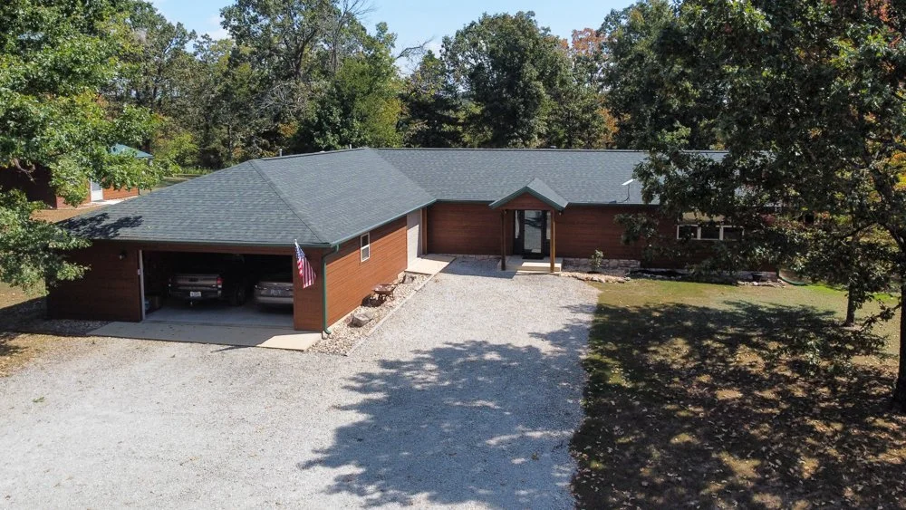 Located at the end of the road and joining the Government Take Line on the Big Creek Arm of Bull Shoals Lake in Taney County, Missouri, this package deal includes a lovely home, outbuildings (including a 2 bed, 1 bath cabin, a neat shop building, a pole barn), and 3 different parcels (47 acres M/L) of land. The 2 bed, 2.5 bath home has over 2000 sq. ft. of living space plus an additional 622 sq. ft. in the oversized garage and mechanical/utility room which is heated and cooled with a separate mini split. The home had a new HVAC system installed in July of this year. A new roof (architectural shingles), rain gutters, and leaf guards were installed 1 year ago. The siding is LP SmartSide. The living room has lots of room for entertaining in itself and flowing directly from the kitchen and dining room, make it appear even larger. The primary ensuite is fantastic! It has a huge walk-in closet and a shower you just have to see to believe. This bedroom has its own HVAC system. Another ensuite is on the opposite end of the home. There are lots of closets and storage areas. A screened in porch and patio off the dining room make the perfect setting for BBQ’s with family or friends.